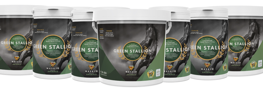 Green Stallion on hevosille suunnattu 100 % luonnon elektrolyytti sisältäen aminohappoja sekä kivennäis- ja hivenaineita parantamaan nesteytystä sekä lisäämään suorituskykyä, jaksamista ja palautumista.